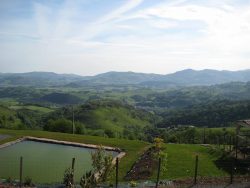 Heute morgen um kurz nach 7:00 Uhr aufgestanden und schön in Ruhe gefrühstückt. Dann alles eingepackt, von der Herberge noch ein “Doggy-Bag” bekommen und mich auf den Weg gemacht. Anfangs war es noch etwas frisch, aber schon nach kurzem “Anstieg” hab ich die Jacke ausgezogen und die Hose gekürzt. Nach 7 Kilometern in Hunto habe ich die erste kurze Pause gemacht – und mich mit Sonnenmilch eingeschmiert – hier brennt die Sonne vom Himmel.