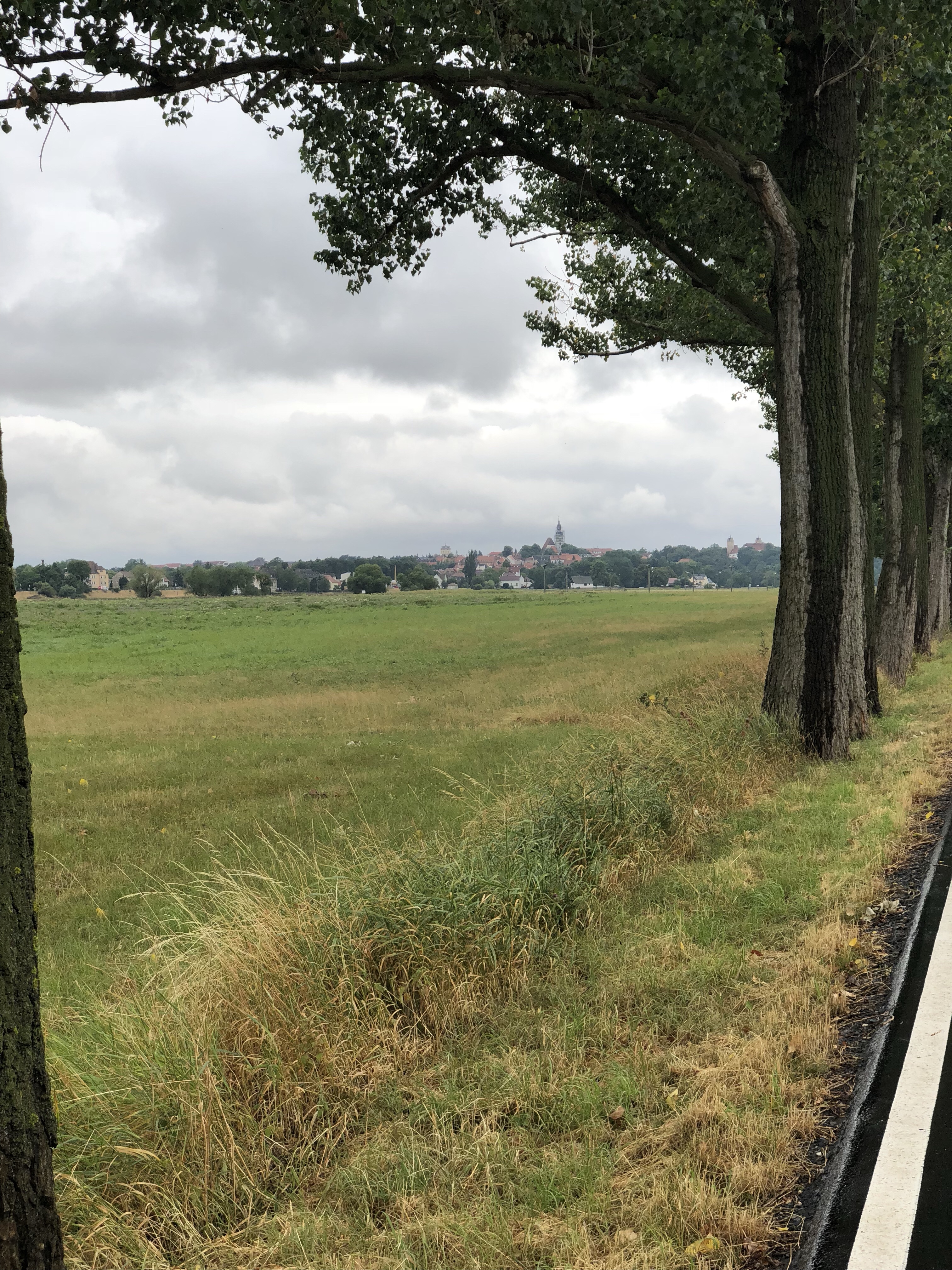 Ich habe dann dort etwas getrunken und bin weiter Richtung Strehla. Der Weg nähert sich der Elbe und verläuft dann als Elb-Radweg auf dem Deich. Dann kam irgendwann Strehla in Sicht