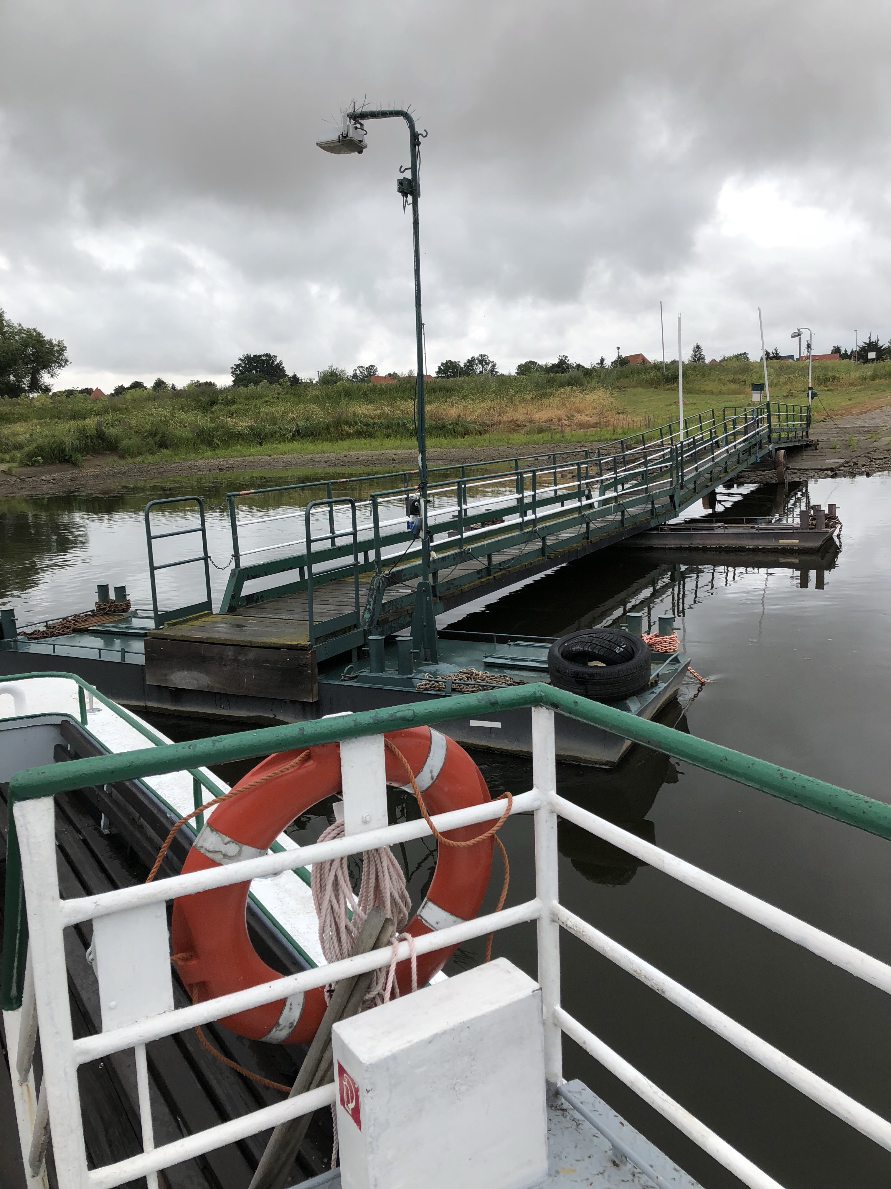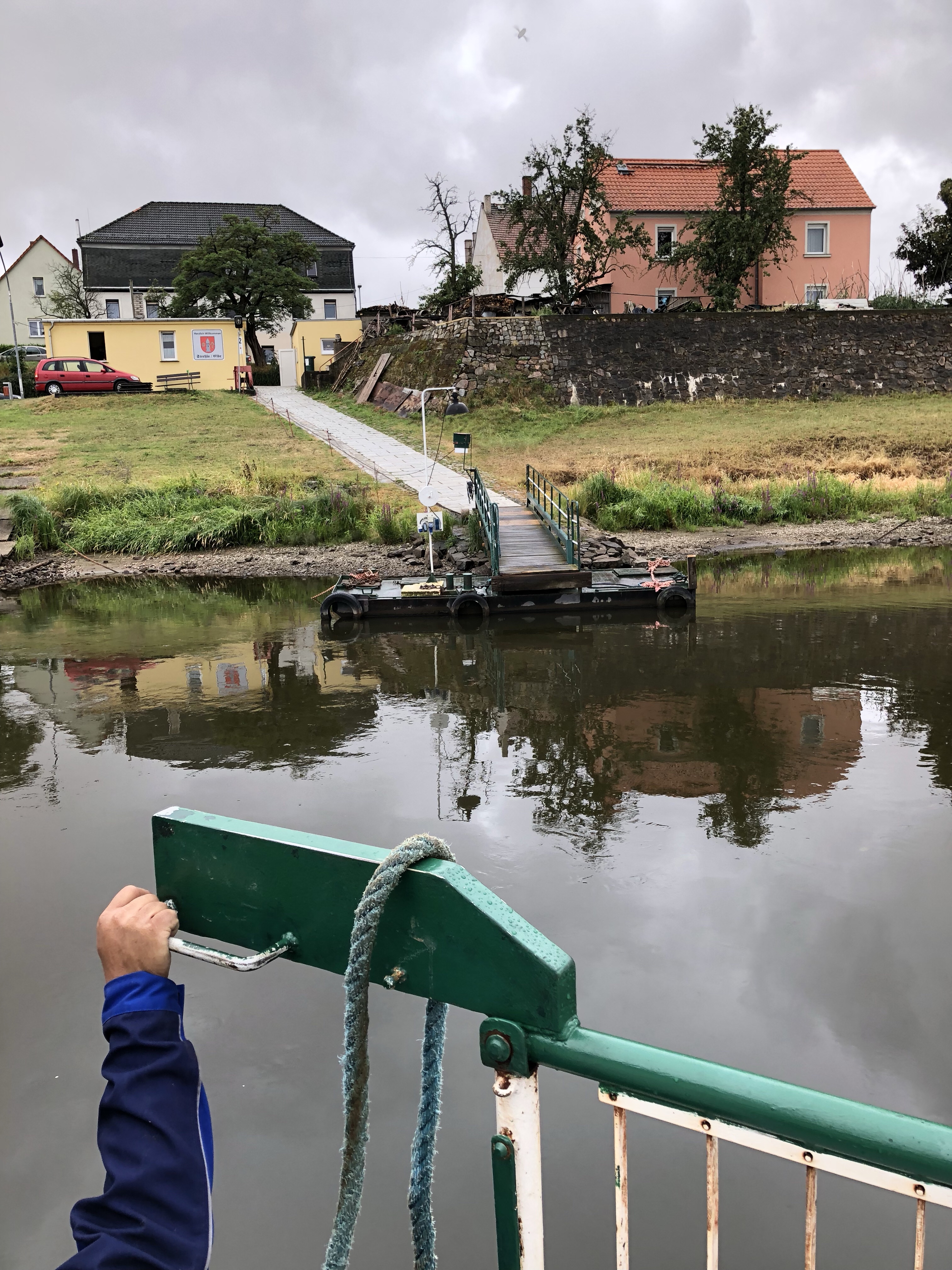 Aber, wie man leider nicht sieht, am anderen Elbufer. In Lorenzkirch gibt es eine Personenfähre! Mit der bin ich dann auf die richtige Seite gefahren: