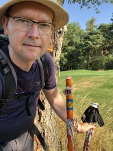 Der Weg ging vorbei an einem Golfplatz und dann sehr schön durch Wald und Felder. Am Golfplatz stand dann auch der letzte Stab meines Weges: